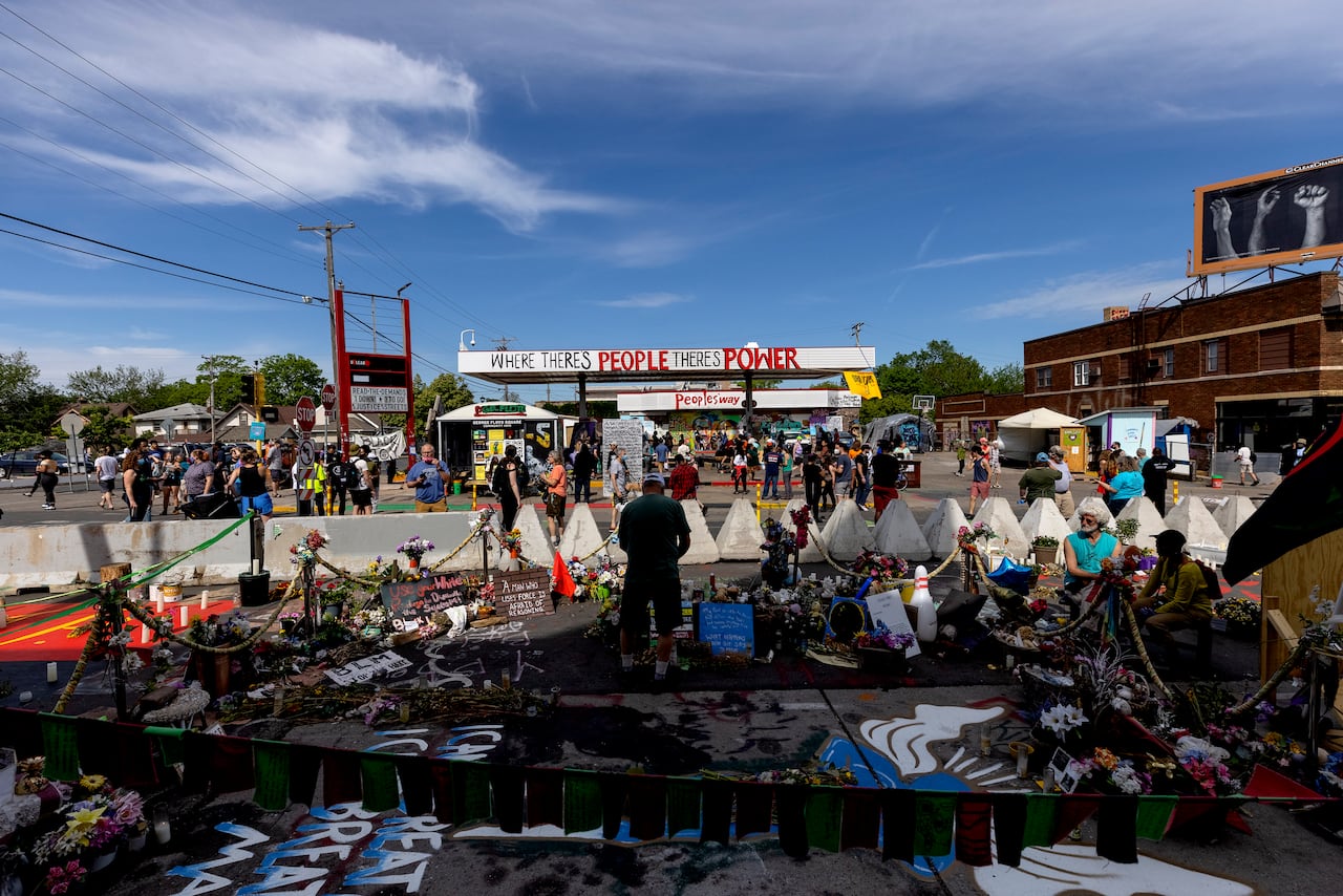 A two-block radius known as the George Floyd Square surrounding the intersection of 38th Street and Chicago Avenue in Minneapolis has been barricaded since shortly after the May 25 2020 death of George Floyd. The square where George Floyd was murdered by ex-Minnesota cop.