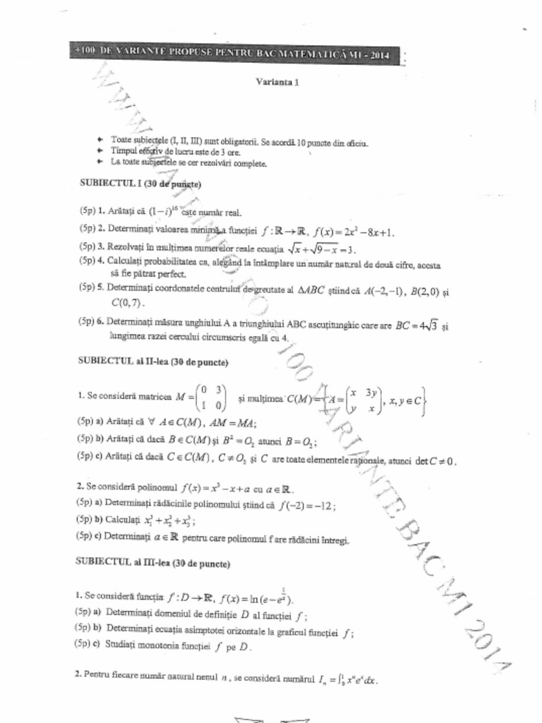 Pdf Variante Bac Mate Subiectul 1 Stoica Romică Academia Edu
