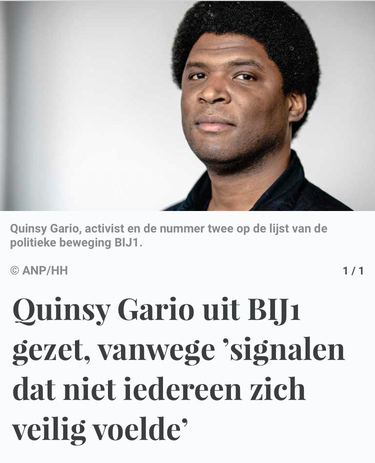 Quinsy Gario is a visual and performance artist from the Dutch Caribbean. Reply on Twitter 1416793736642760704 Retweet on Twitter 1416793736642760704 1 Like on Twitter 1416793736642760704 10 Twitter 1416793736642760704. At the top of the BIJ1 party a simmering conflict has surfaced.