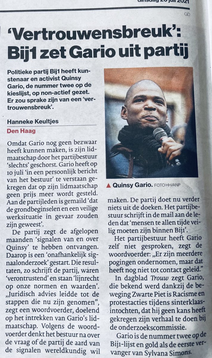 Quinsy gario twitter. He sent out a racist tweet calling me graaipiet greedy Black Pete. We discussed the structure of Dutch politics its majority and. The membership of the number two on the electoral list in the parliamentary elections will be withdrawn because of signs that not everyone felt safe within the party.